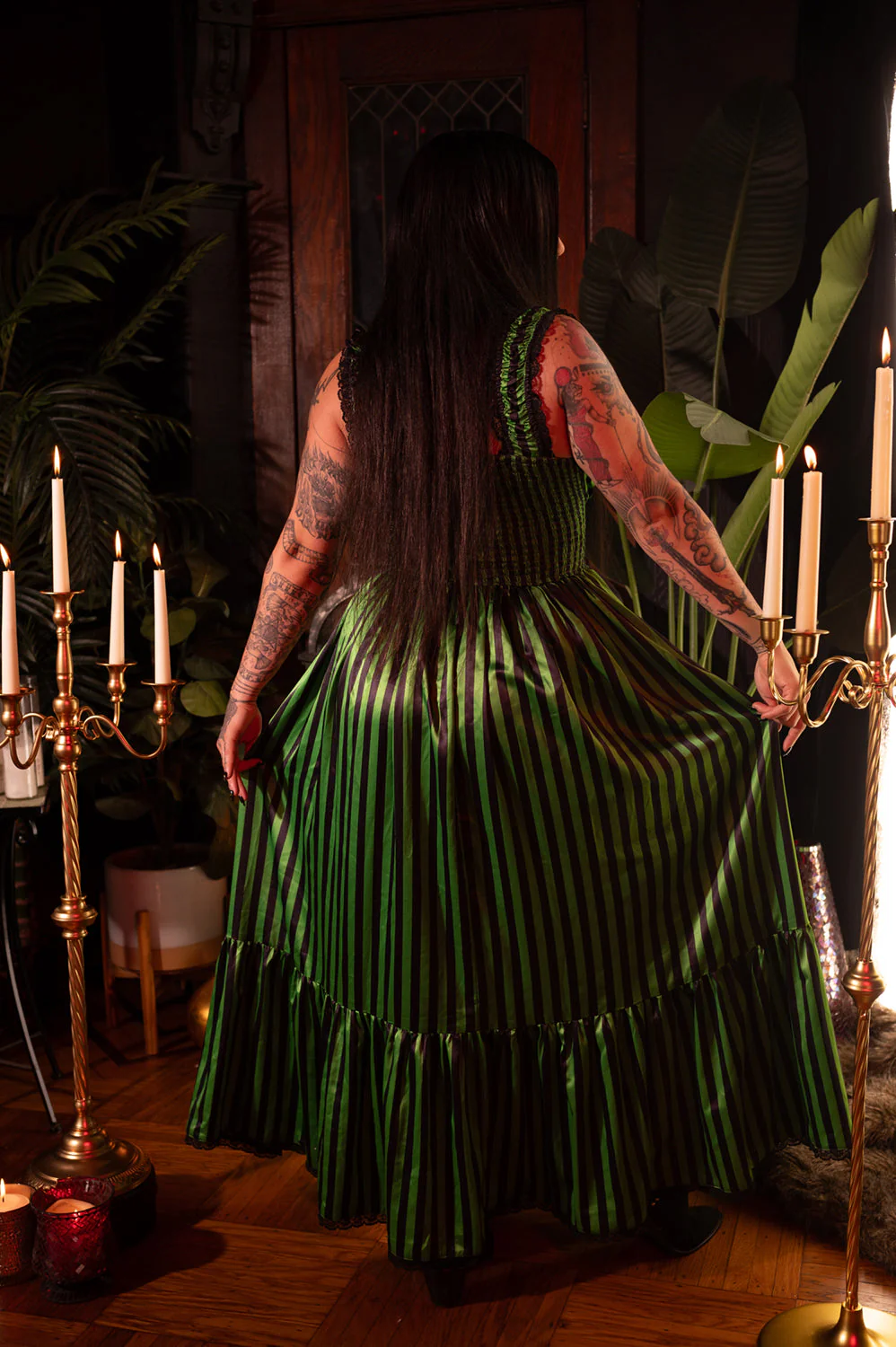 The new Cosette Dress in Horror Green stripe is nothing short of spooky and magical!